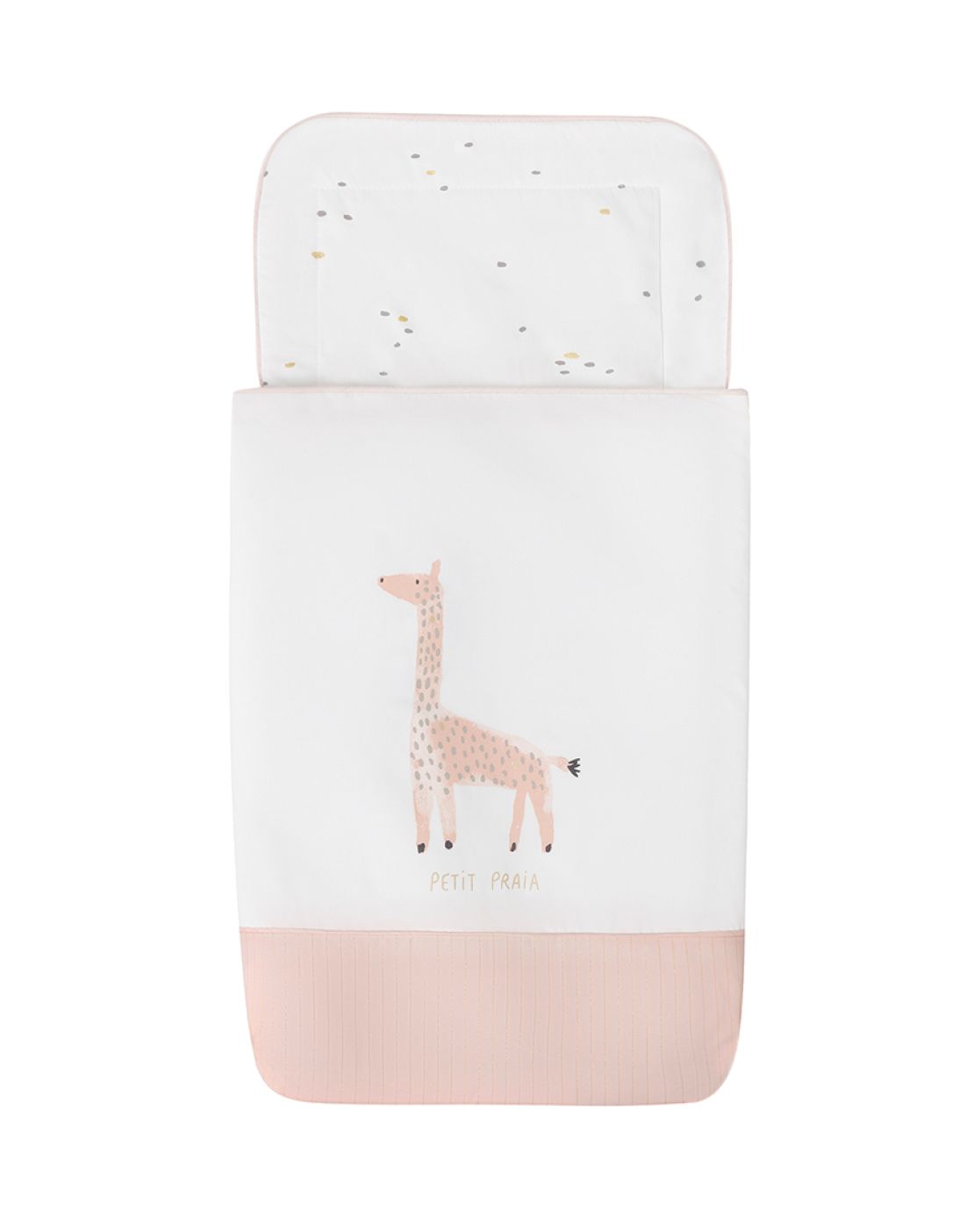 Tejido exterior 100% algodón con estampado posicionado, combinado con pieza de tejido gris 99% algodón 1% lúrex